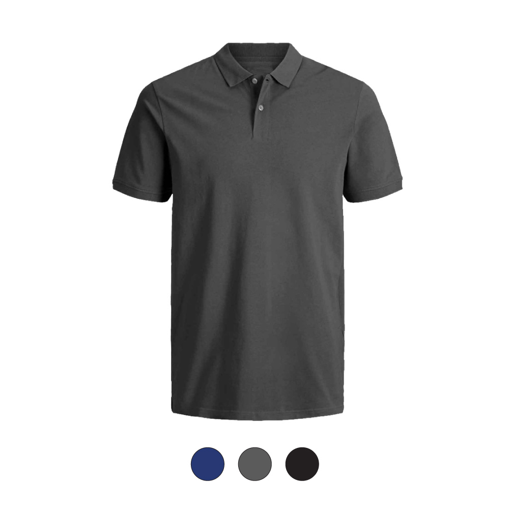 Camiseta tipo polo para hombre en algodón – poliester. Azul oscuro, gris oscuro, negro.