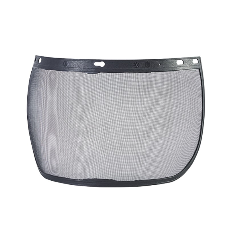 Visor en malla para protección facial, adaptable a cabezales o soportes para cascos, con ribete de protección de borde plástico adaptable oara careta de guadañar.